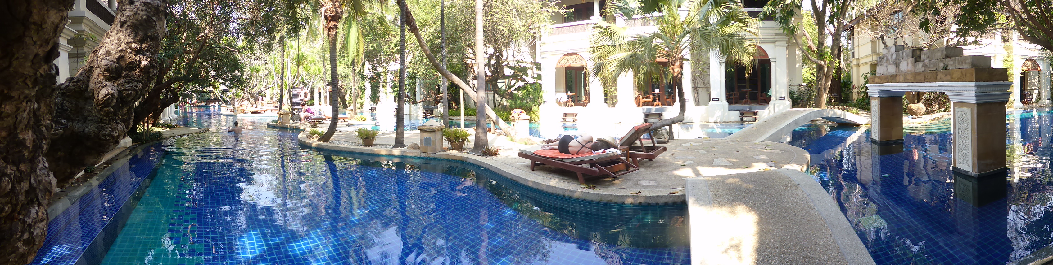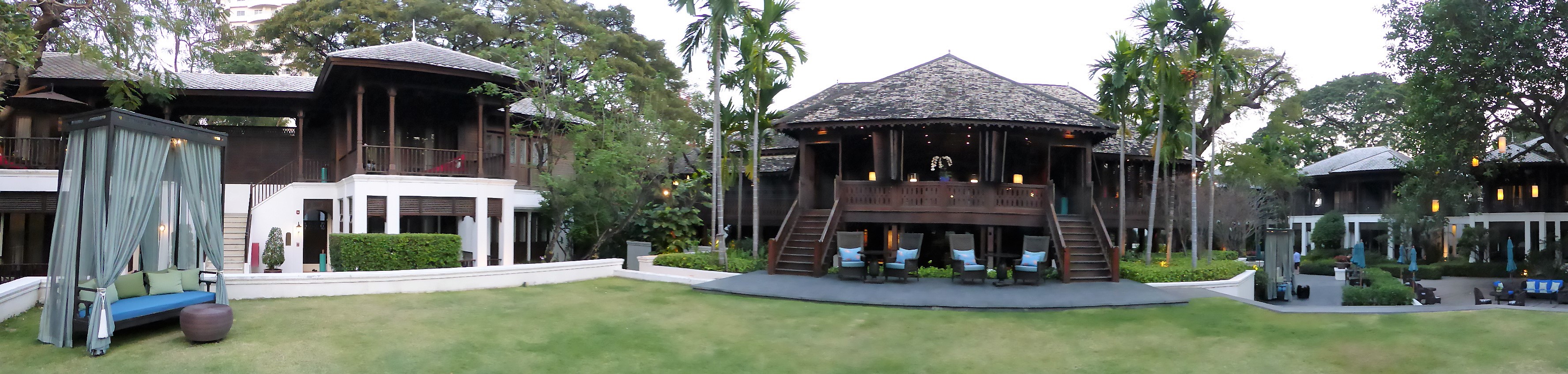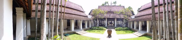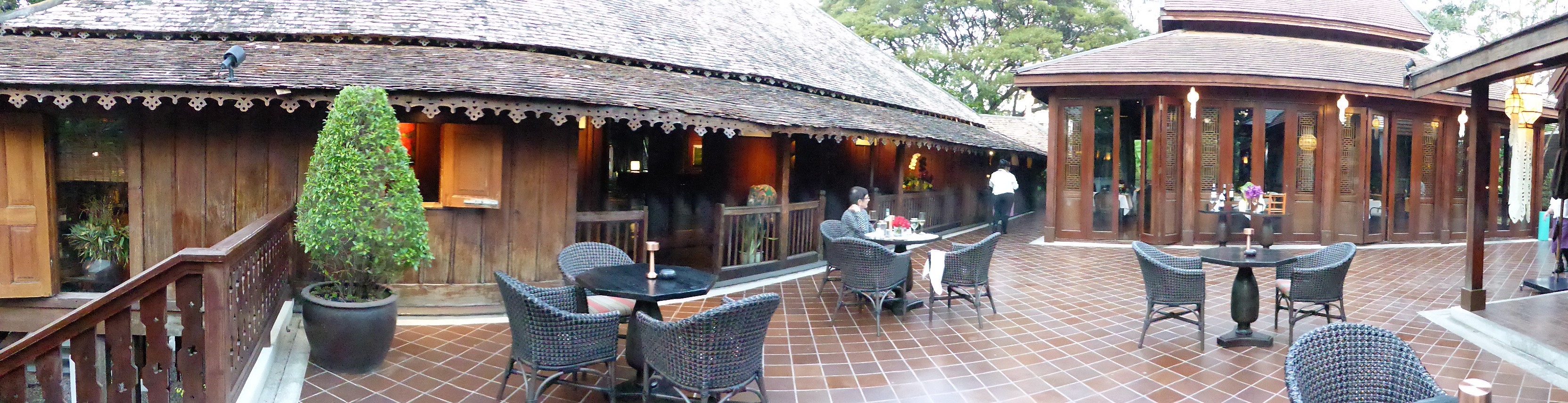 Centara Khum Phaya hotel (opened 2008, 85 rooms), Lana-style architecture, recycled teak roofs, century-old trees; 2.40pm, 12 February 2017.