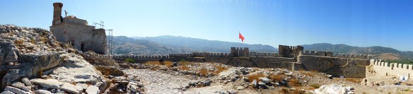 The fortress of Selçuk on Ayasoluk Hill: The remains of the partially restored fortress date from Byzantine, Seljuk and Ottoman times. 31 August, 2015.