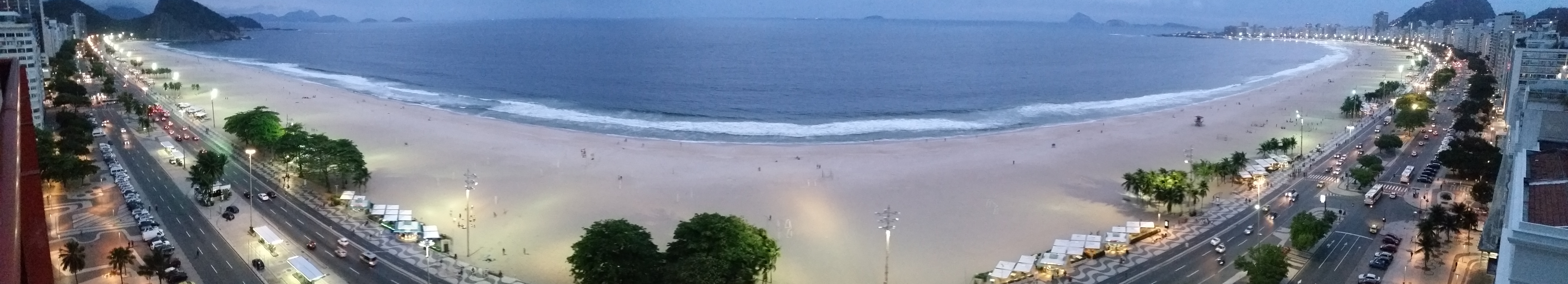 Copacabana beach, located at the Atlantic shore, stretches from Posto Dois (lifeguard watchtower Two) to Posto Seis (lifeguard watchtower Six). Hotels, restaurants, bars, nightclubs and residential buildings dot the promenade facing Avenida Atlântica. Rio de Janeiro, 4 October 2018.