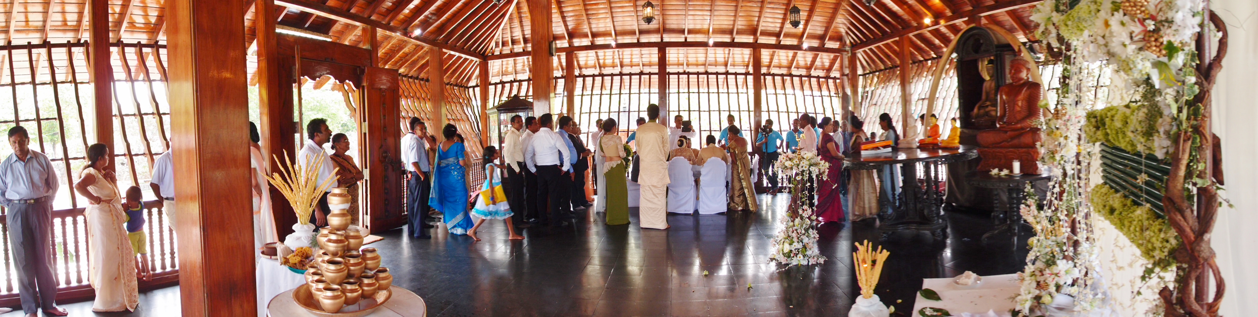 Buddhist engagement ceremony at Seema Malaka Buddhist temple on Beira Lake designed by Geoffrey Bawa, 1979, Colombo, 5 October 2014.