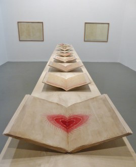 Down by the Bosphorus at Istanbul Modern — the main venue and where you could view the largest segment and heart of this complex exhibition — was Sonia Balassanian’s (born Iran, lives and works in NYC and Armenia) sculpture Silence of Stones 2015. With echoes of Alys’s The Silence of Ani, her 12 large head-shaped forms — mute but full of memory — were carved from tufa stone, from quarries near Ani. Aslı Çavuşoğlu (from Istanbul) presented delicate drawings, Red/Red 2015, using carmine-red ink made from Armenian cochineal (a scale insect indigenous to the Ararat plain) applied to worn-out papers and notebooks, while Sarkis (born Istanbul, lives in Paris), showed a re-created series of 51 politically motivated photo-collages. Nearby were a series of 14 paintings 1948-91 by Paul Guiragossian (1925-1993, Jerusalem-Beirut); subtle images of enigmatic figures in watercolours and oils gazing back at us from another time.