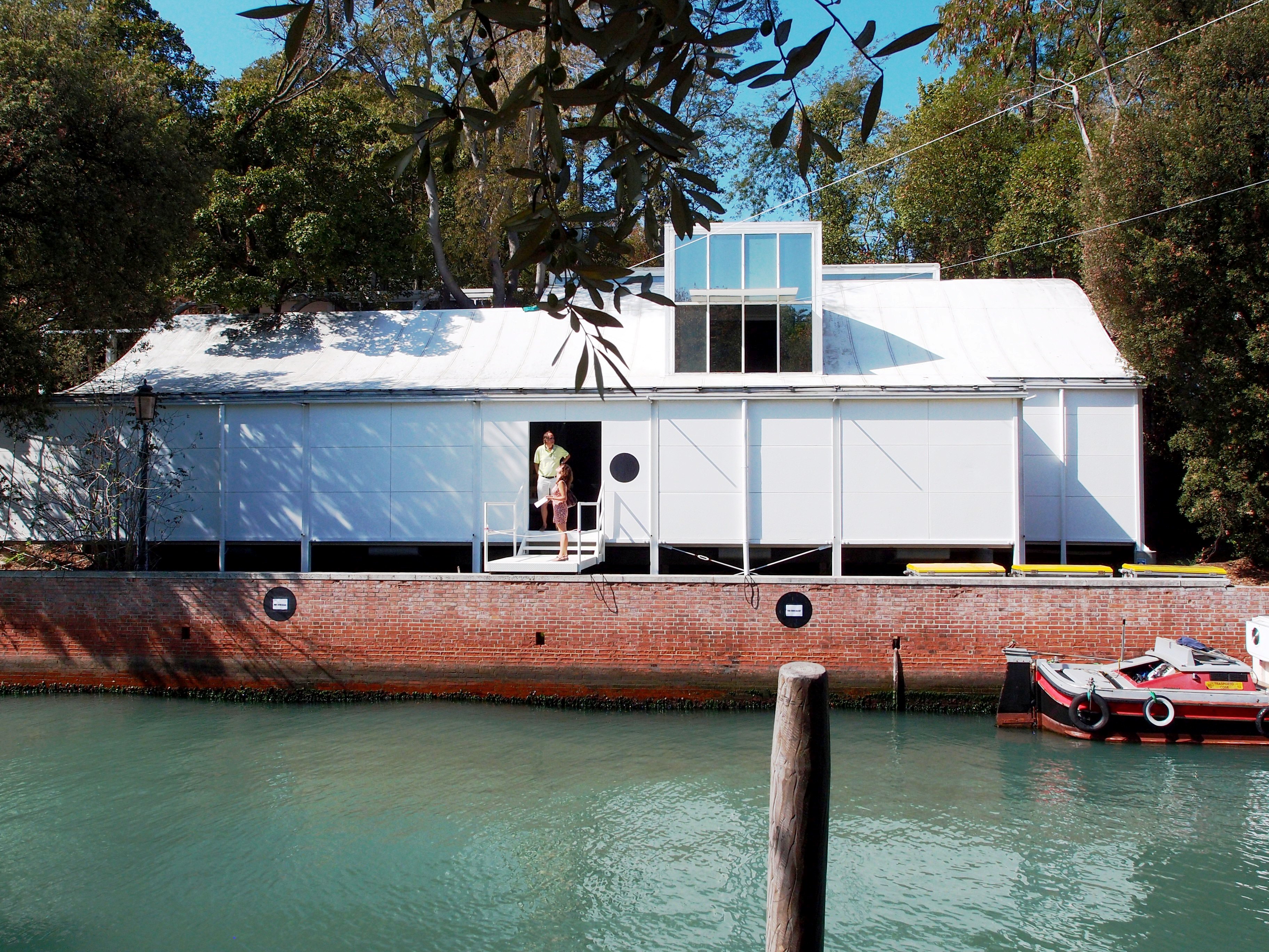 Below the skylight a large, rectangular opening in the canal side, led visitors to the water’s edge via a small platform, something not seen before, that completely opened up the structure. Perhaps a liberty granted as this was the second to last time the pavilion would be used; the last time being for the 2013 art biennale. The previously neglected canal aspect of the site will be effectively rectified with Australia’s new — black on the outside, white on the inside — pavilion designed by Denton, Corker, Marshall with completion anticipated in time for the 2015 art biennale.