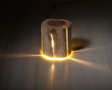 ‘WOOD: art design architecture’, Duncan Meerding, Cracked log lamps, 2011. Salvaged logs, appox 23 x 20 x 20cm. Photo: Jan Dallas