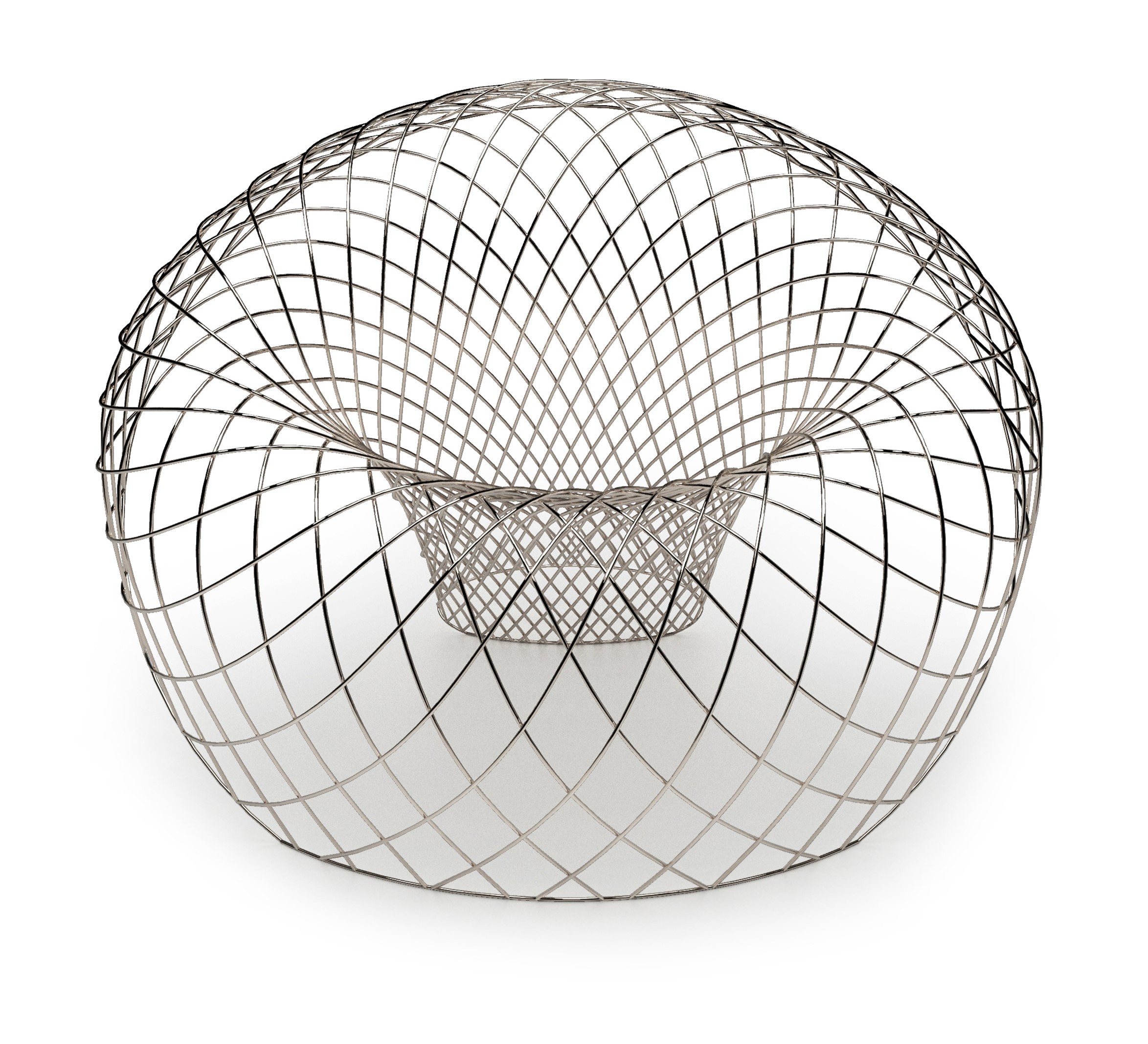 Brodie Neill, Reverb Wire Chair, 2010. Hand formed, mirror stainless steel rods, 750 x 830 x 1000mm Photo: Marzorati Ronchetti Collection of Patrick Brillet of Patrick Brillet Fine Art Ltd.