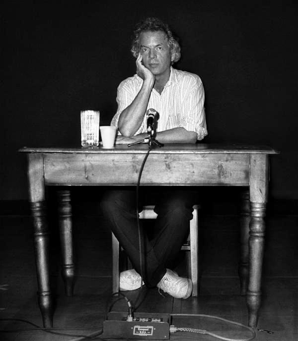 Before I really knew who he was I saw Gray perform at the 1986 Adelaide Festival. My first monologue experience was Sex and Death to Age 14, and I was hooked, I was in and wanted more. I went back to as many readings as I could get tickets for — four others I think, including Swimming to Cambodia parts one and two and probably Booze, Cars and College Girls, as well as Interviewing the Audience. Like thousands before me, I became an immediate fan, intoxicated with the man’s ability to so aptly lay himself bare. It seemed that this was the perfect time for me to experience Gray. After one of these monologues my American girlfriend briefly chatted with him and, later that week, at one of the many post Festival event parties Spalding approached my GF from behind, playfully cupping his hands over her eyes. We were a little flirty with him, exchanging a few words and bobbing and dancing a bit, until his attention was taken by young blonde twins. ‘Damn’, I remember thinking, ‘Where did they come from?’.