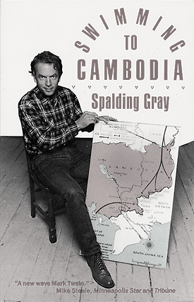 Writer, actor and performance artist Spalding Gray, developed and wrote Swimming to Cambodia over two years from 1983 to ’85, but his work’s origins were not in published writing, but in performing what famously became known, in the 80s, as his ‘monologues’. These began as notes, a remembered life, extensive diary-like entries, edited words and events from a web of complexity. They evolved and were presented with an actor’s consummate delivery — with perfectly timed dramatic pauses and deep breaths — to art-house audiences. Early on he was told he had ‘excellent timing’, and ‘timing’s everything isn’t it?’, he later said ironically. ‘Like all genius things’, wrote theatre director Mark Russell, Gray’s autobiographical monologue was ‘a simple idea turned on its axis to become absolutely fresh and radical’. He was using himself to play himself.
