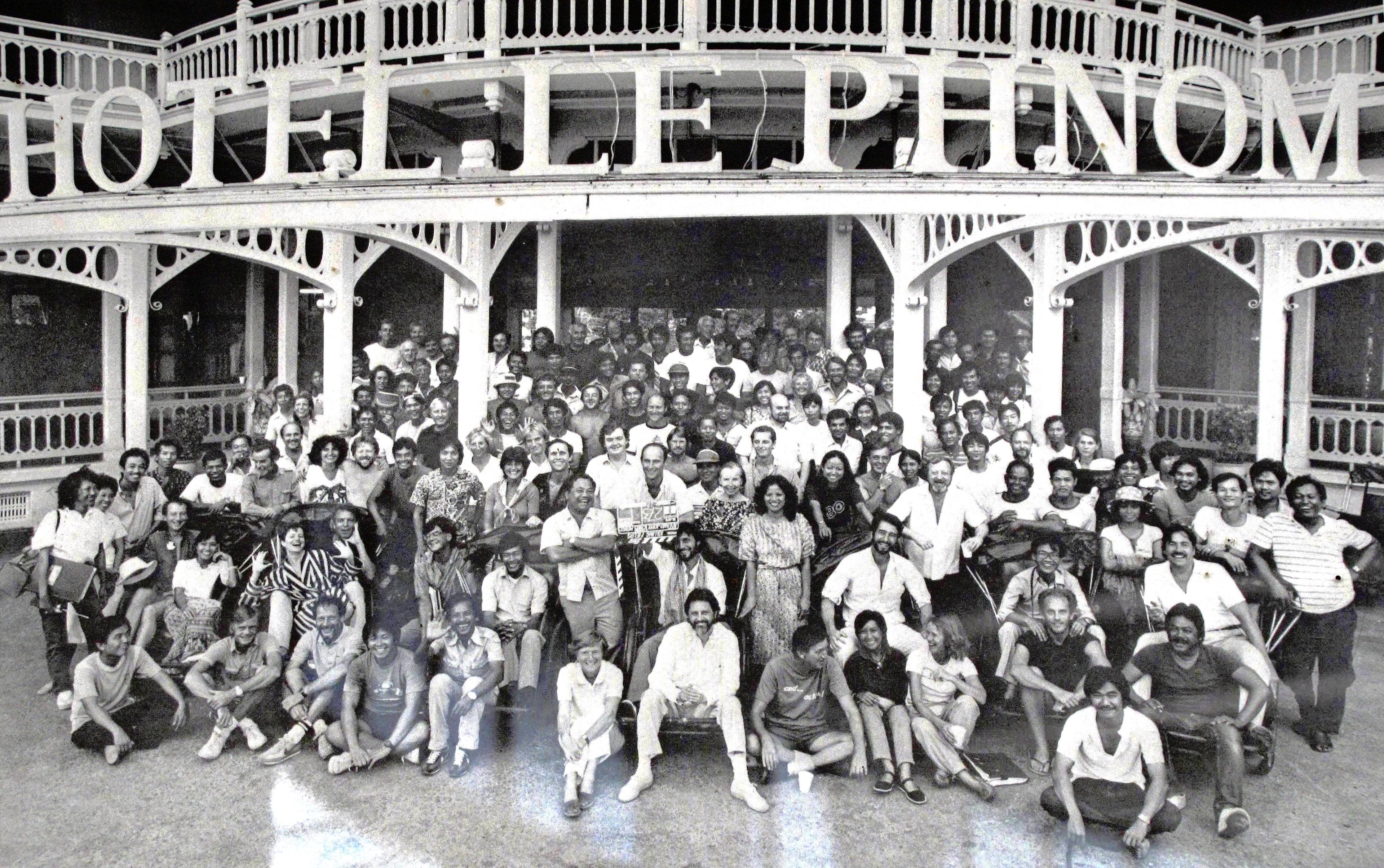 Railway Hotel, Hua Hin; renamed for the film ‘The Killing Fields’, with the cast, 1983. (PS: I can’t find Spalding. Graham Kennedy is on the right-middle and, to the right of him, John Malkovich.)